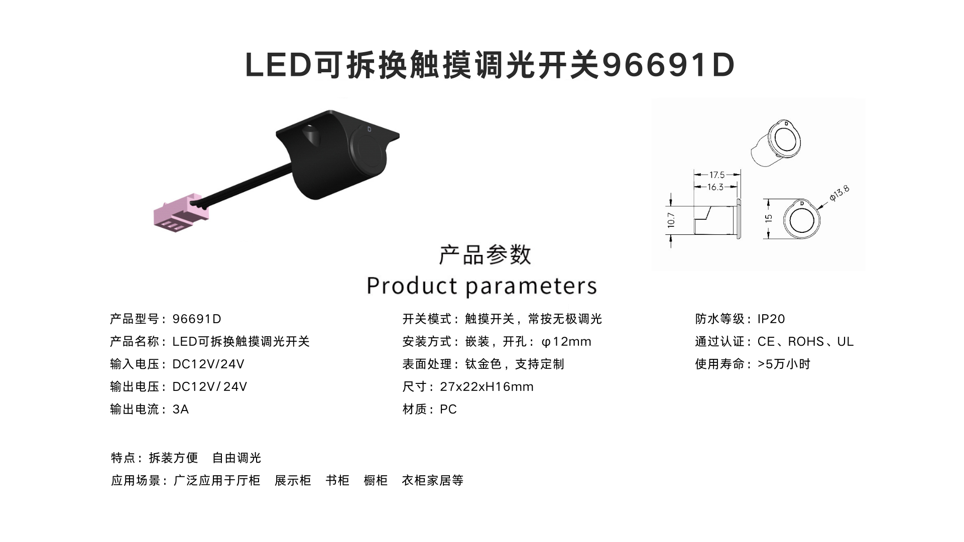 LED触摸调光开关 96663D