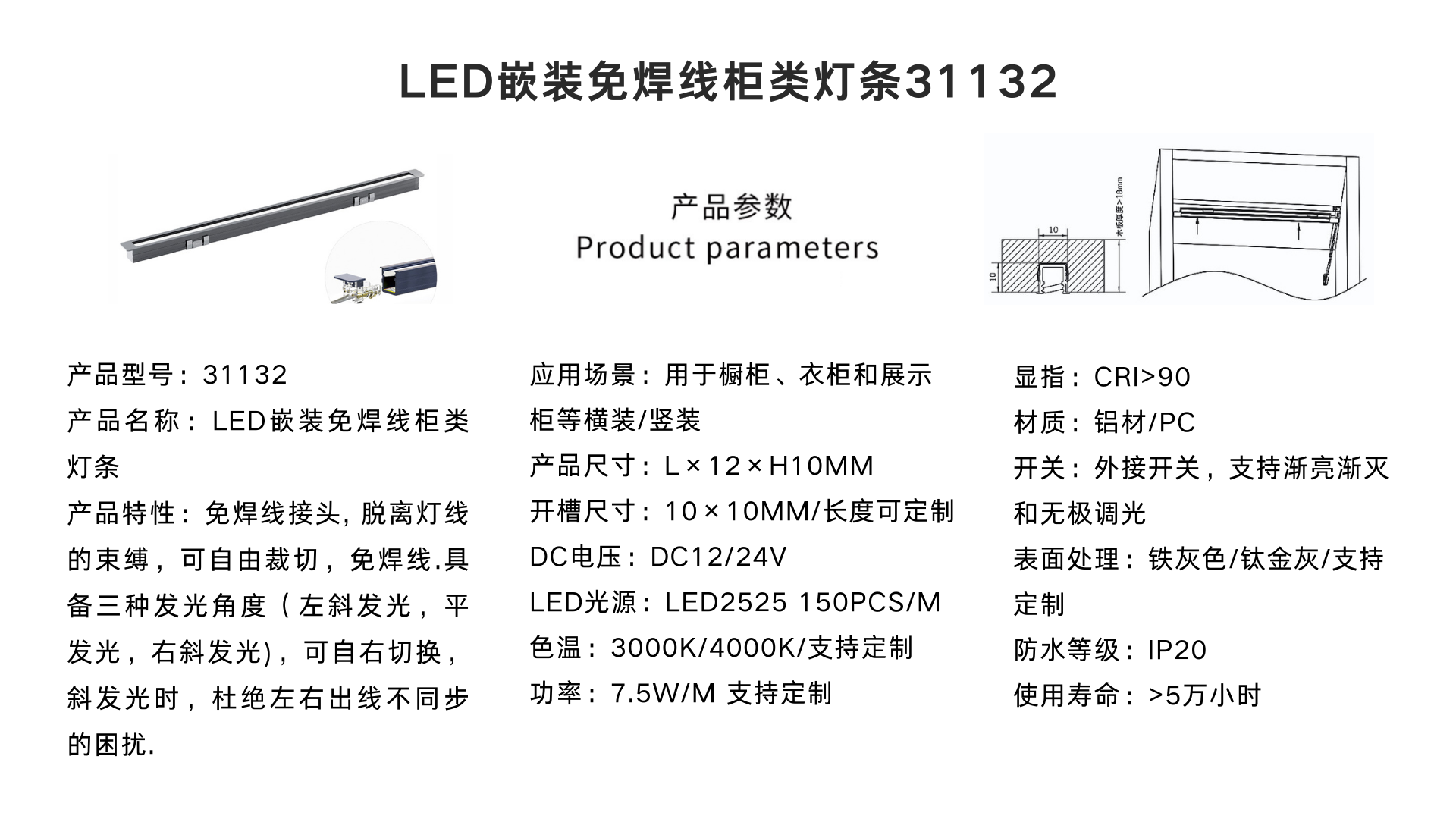 LED嵌装灯线分离&免焊线柜类灯条31132K